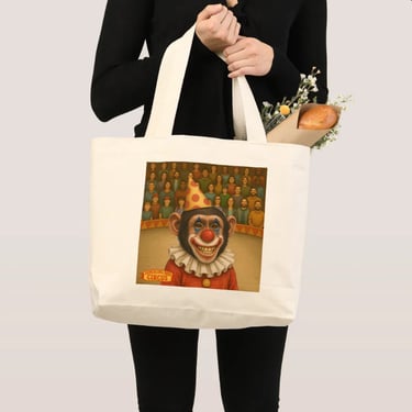 Chester the chimp clown tote bag.