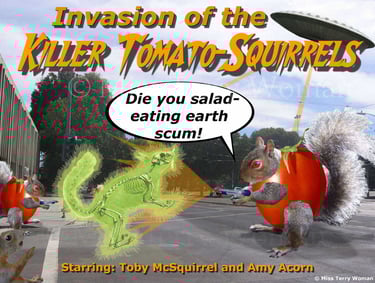 The second is another parody, but of the film once voted as the worst horror movie of all time, "Attack of the Killer Tomatoes."